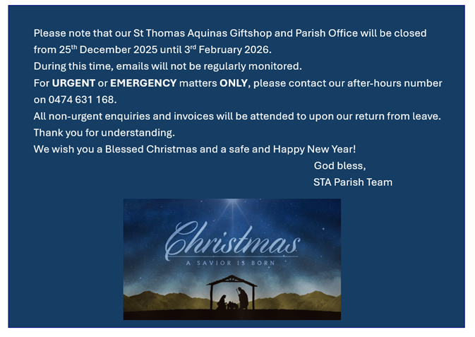 All payments made to the St Thomas Aquinas Springwood Parish are non-refundable.